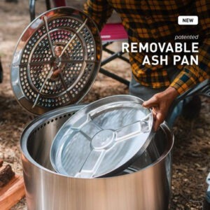 Norėdami išvalyti ugniakurą, jums nereikės specialių įrankių. Nauja, nuimama Bonfire pelenų lėkštė dugne sulaiko visus smulkius pelenus vienoje vietoje. Tiesiog pakelkite pagrindinę plokštę, kad išimtumėte pelenų indą, išvalykite jos turinį ir viskas!
