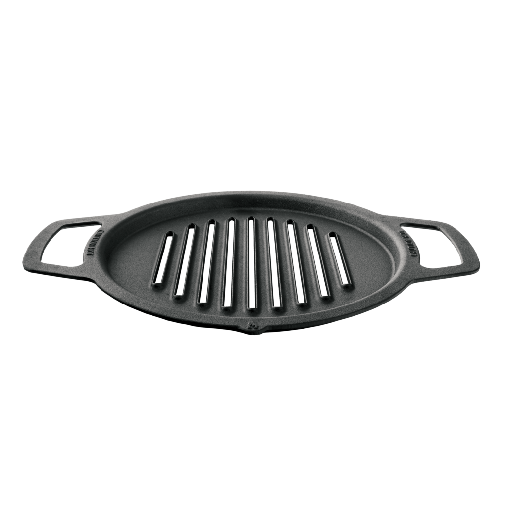 Novice chefs can achieve mastery of open fire cooking in no time with Cast Iron Grill’s natural counter to intense heat. It heats up gradually and evenly, then transfers heat steadily to maintain perfect cooking temperatures with a single layer of burning embers.